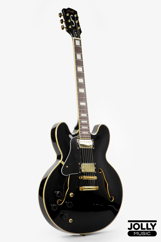 JCraft AR-3 JM Semi-Hollow Electric Guitar - Black Gold LEFT HAND